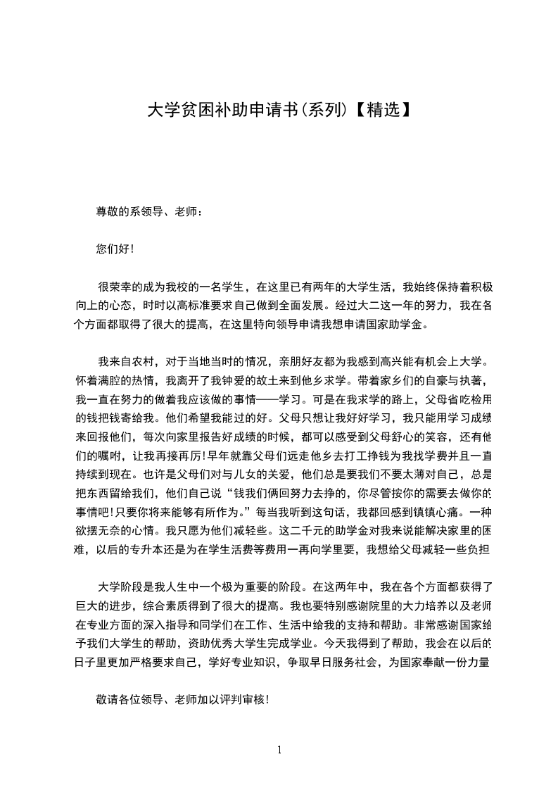 很荣幸的成为我校的一名学生,在这里已有两年的大学生活,我始终保持着积极向上的心态,时时以高标准要求自己做到全面发展。经过大二这一年的努力,我在各个方面都取得了很大的提高,在这里特向领导申请我想申请国家助学金。