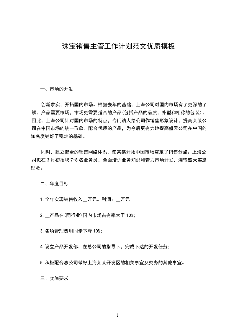 在新年度销售工作规划中,首先要做的就是销售目标的拟订,都是具体的、数据化的目标,包括全年总体的销售目标、费用目标、利润目标、渠道开发目标、终端建设目标、人员配置目标等等,并细化分解。如终端类产品的销售目标就要按品项分解到每个区域、每个客户、每个系统等等;流通类产品分解到每个区域、每个客户等。
