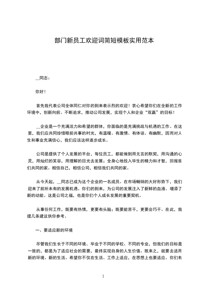 首先我代表公司全体同仁对你的到来表示烈的欢迎!衷心希望你们在全新的工作环境中,创新向前、不断追求,推动公司发展,实现个人和企业“双赢”的目标!