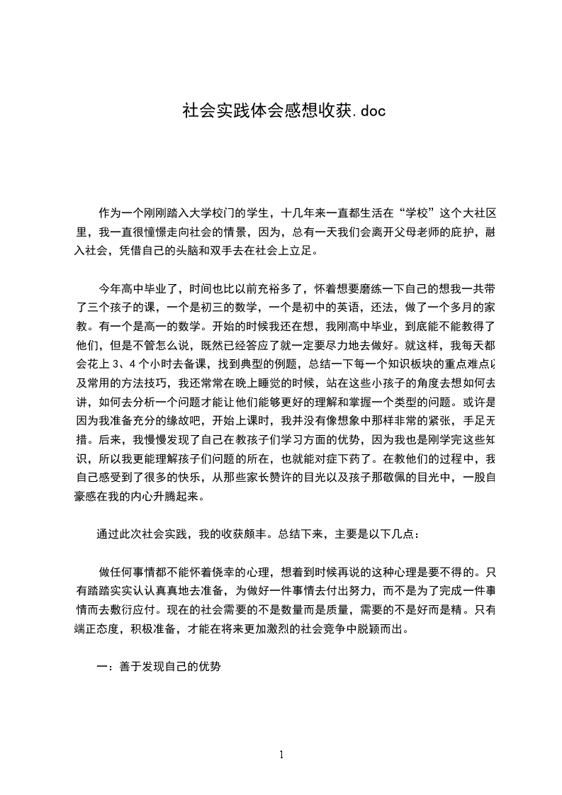 每个人身上都有闪光之处,扬长避短是找到合适定位的好方法。就拿这次做家教来说,或许在讲课经验上我不如那些高年级的学长们,但是,我可以更好地去发现孩子们的问题所在,对每个孩子都进行针对性的讲解。也正是因为如此,我获得了家长们的认可,一直到现在,一位孩子的家长还与我保持着联系,和我一起交流孩子们遇到的问题。由此可见,发挥自己的优势可以起到事半功倍的效果。在将来真正走向社会时,我们会更加的意识到正确地认识自我的重要性,因为这个社会是多元的,每个人都会有不同的社会分工,只有找到适合自己的位一、不打无准备之仗