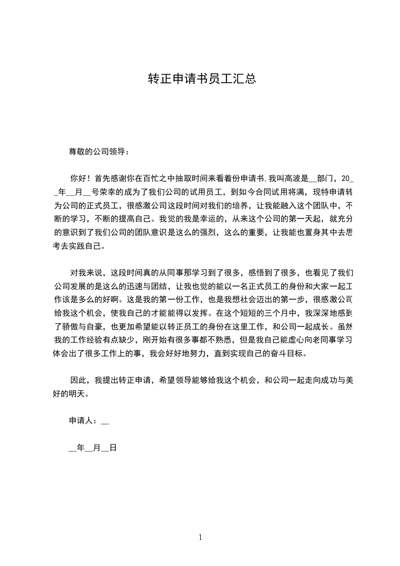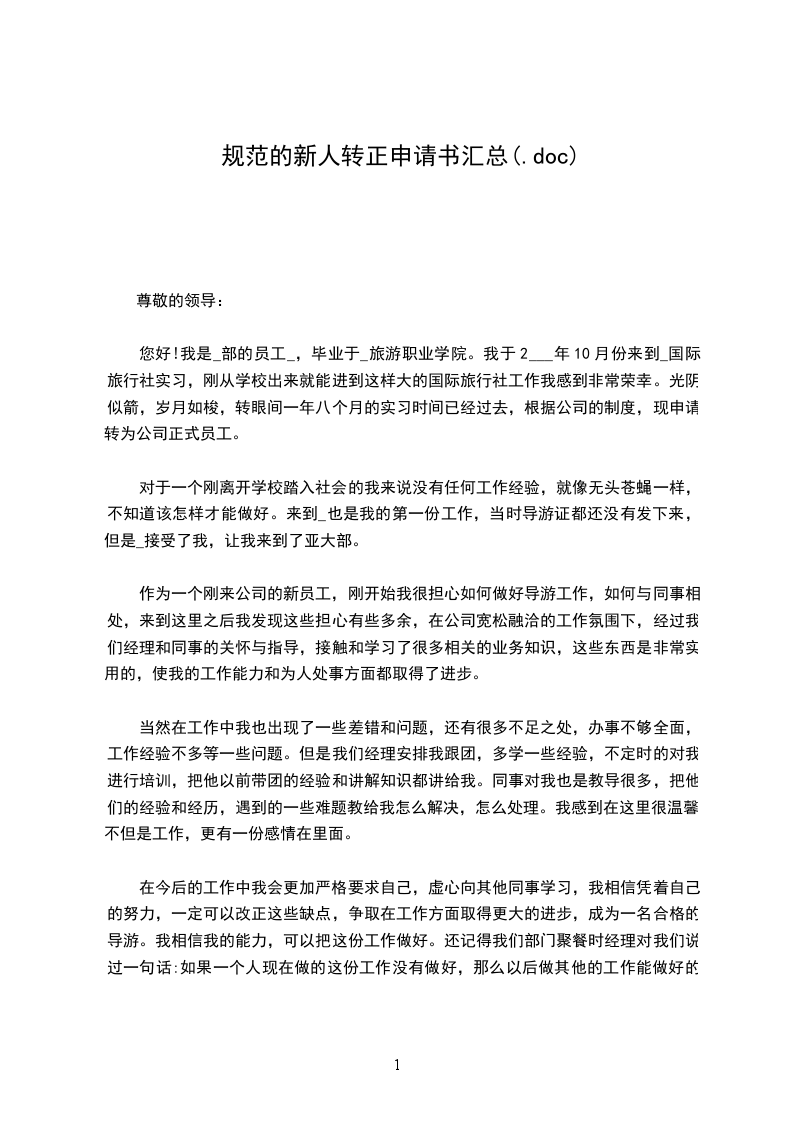您好!我是_部的员工_,毕业于_旅游职业学院。我于2___年10月份来到_国际旅行社实习,刚从学校出来就能进到这样大的国际旅行社工作我感到非常荣幸。光阴似箭,岁月如梭,转眼间一年八个月的实习时间已经过去,根据公司的制度,现申请转为公司正式员工。