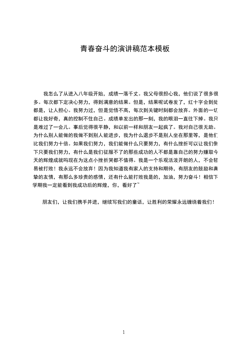 我们中学生是一个轻而庞大的群体,是古老国土上美丽的风景是站在巨人肩膀上凌空欲冰的雄鹰。正因为我们年轻,我们才感到肩上责任的重大,使命的艰辛;正因为我们执着,我们才不惧怕与痛苦和磨难抗争。我们拥有蓝天的广阔,拥有大地的富饶,拥有太阳的辉煌,拥有春风的温馨。永不言败是我们的性质,勇于竞争是我们的特征,拼搏进取是我们的追求,挑战极限是我们的决心,因此我们豪不畏惧失败!跌倒了再爬起来,失败了重头再来!