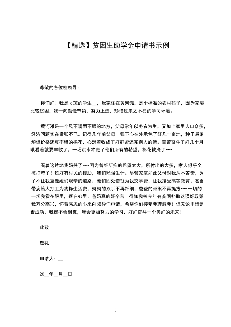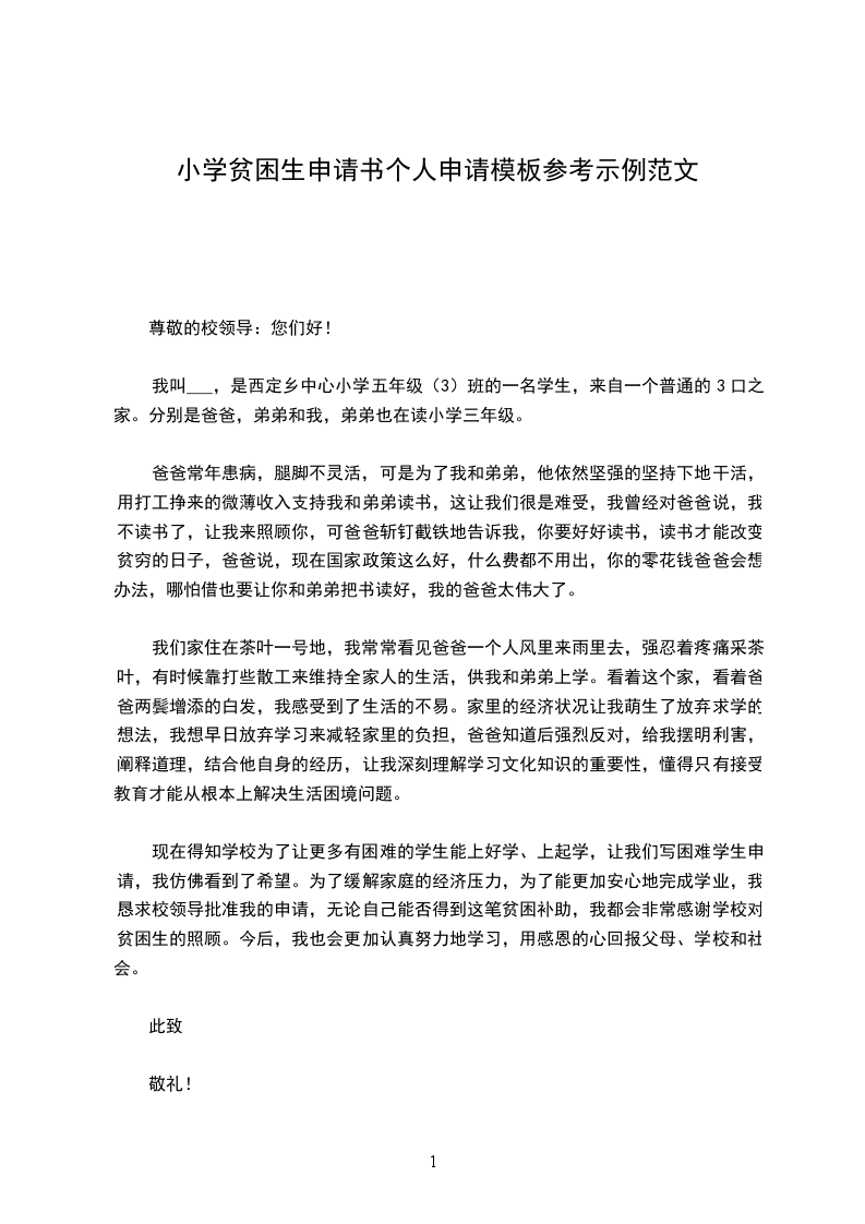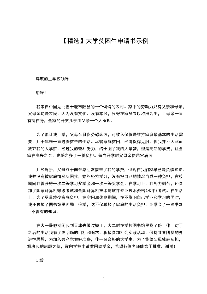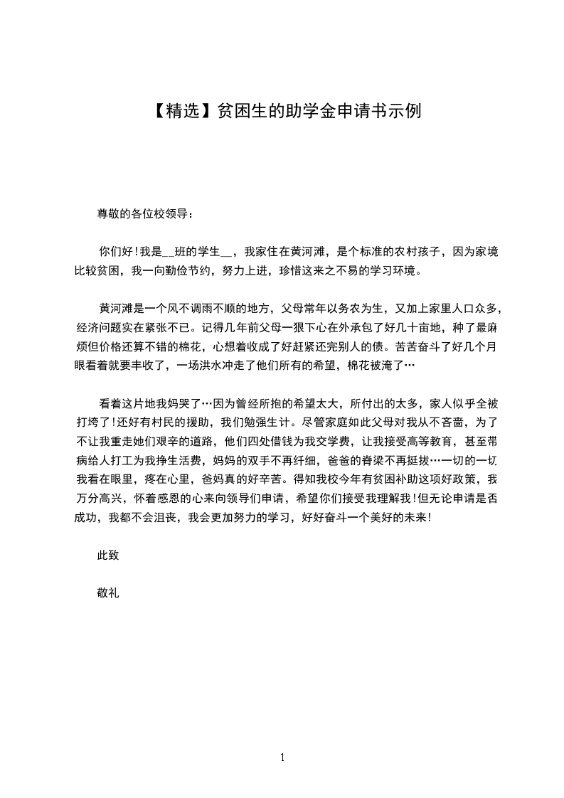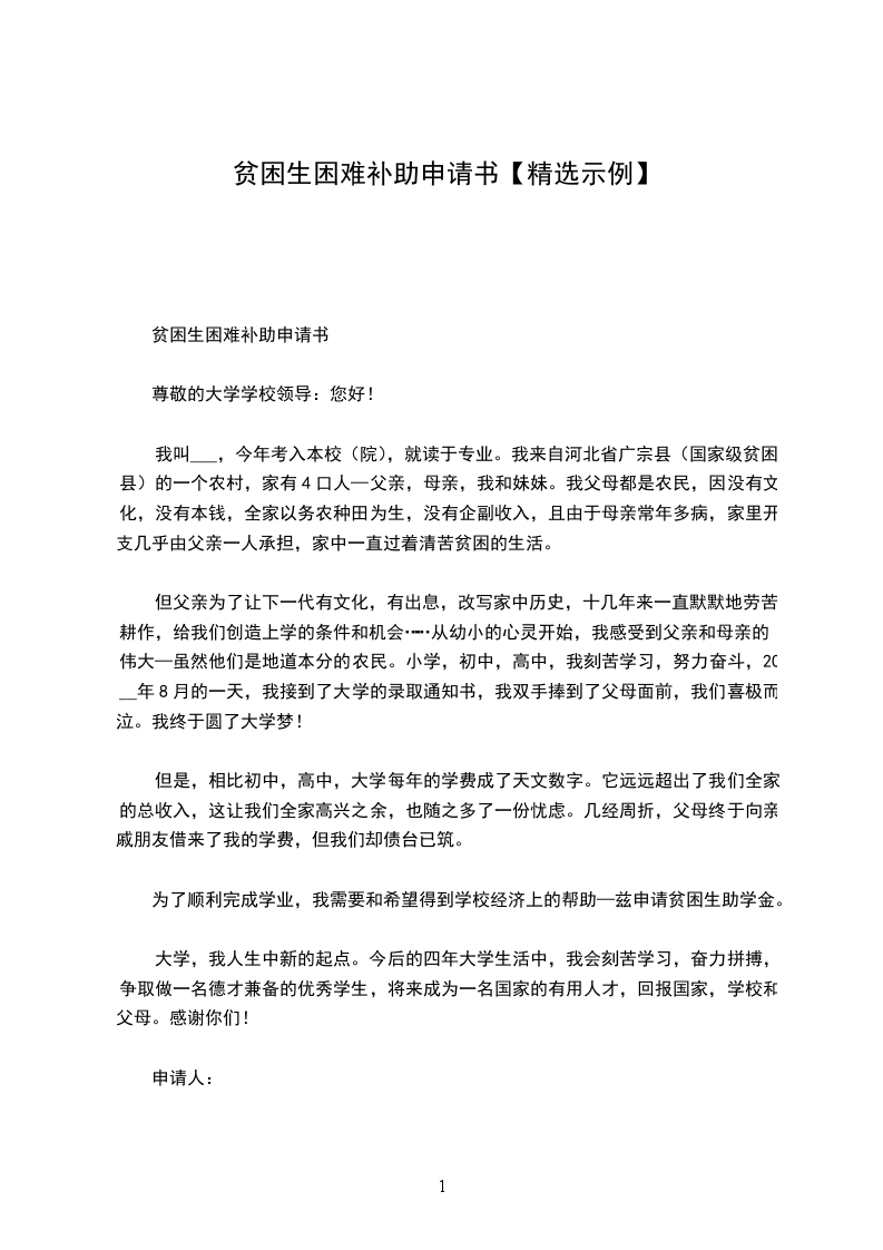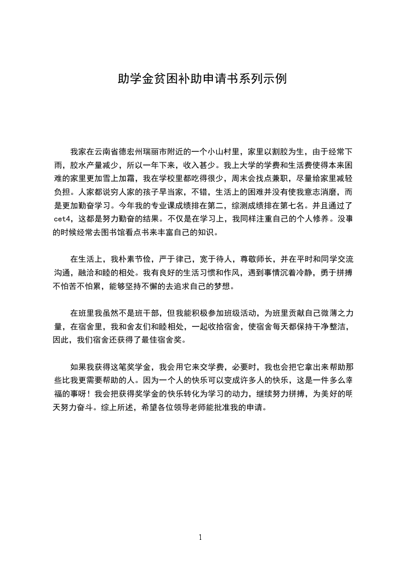 现在得知学校为了让更多有困难的学生能上好学、上起学,让我们写困难学生申请,我仿佛看到了希望。为了缓解家庭的经济压力,为了能更加安心地完成学业,我恳求校领导批准我的申请,无论自己能否得到这笔贫困补助,我都会非常感谢学校对贫困生的照顾。今后,我也会更加认真努力地学习,用感恩的心回报父母、学校和社会。