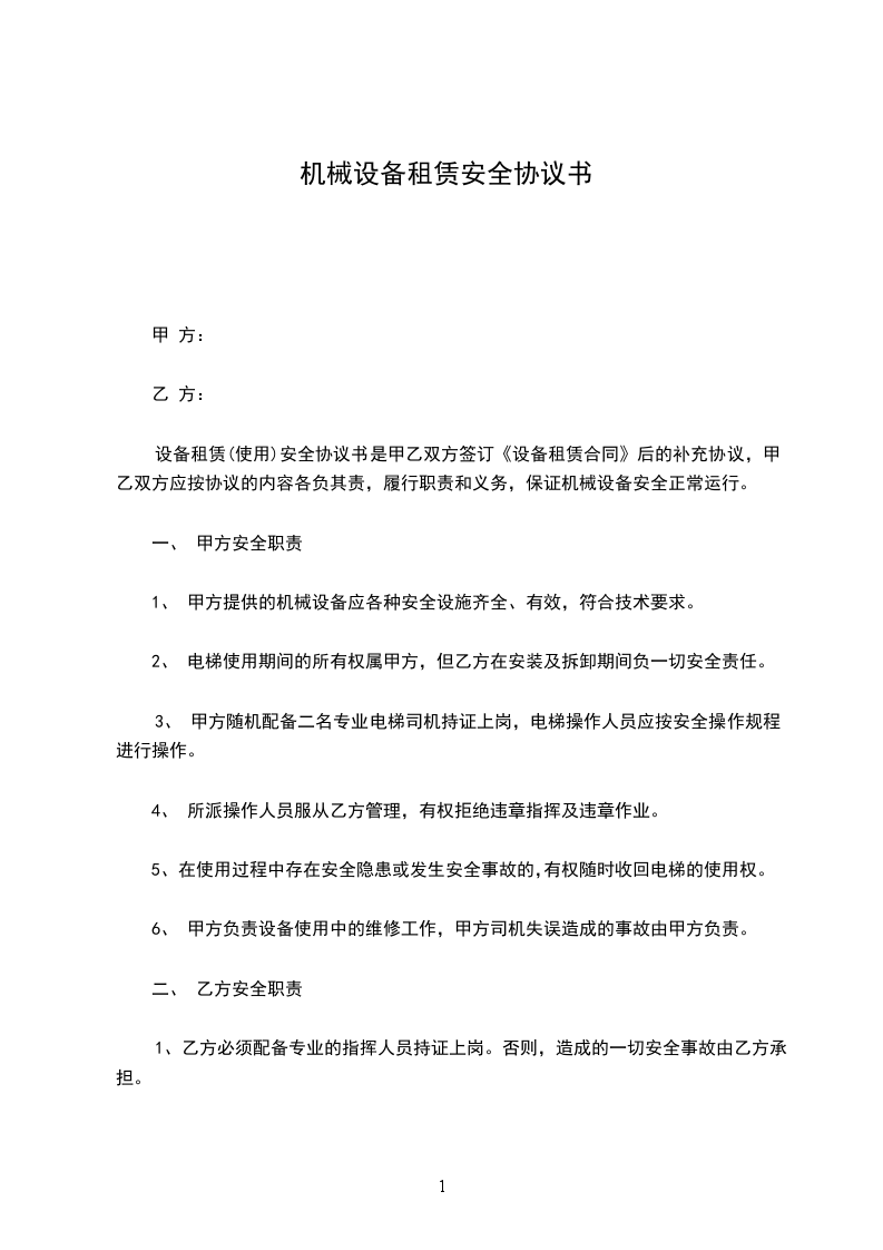 1、 甲方提供的机械设备应各种安全设施齐全、有效,符合技术要求。