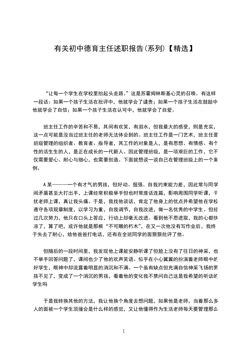 班主任工作的辛苦和不易,其间有欢笑,有泪水,但我最大的感受,则是充实,这一点可能是没当过班主任的老师无法体会到的。班主任工作是一门艺术,班主任是班级管理的组织者、教育者、指导者,其工作的对象是人,是有思想、有情感、有个性的活生生的人,是正在成长的一代新人。因此管理班级,是一项艰巨的工作,它不仅需要爱心、耐心与细心,也需要创造。下面就想谈一谈自己在管理班级上的一个案例。