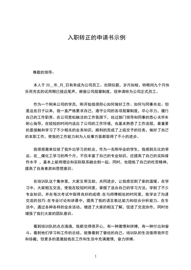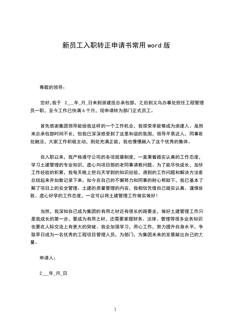 您好,我于2___年_月_日来到浙建投总承包部,之后到义乌办事处担任工程管理员一职,至今工作已快满6个月,现申请转为部门正式员工。