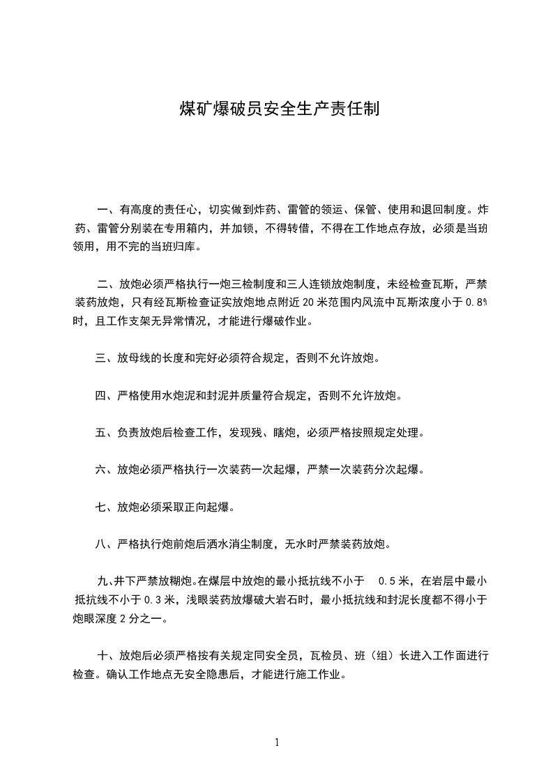 十一、放炮必须由专职爆破员持证上岗爆破,爆破员必须听从放炮指挥领导的指挥和口令。指挥领导没有发出点炮口令不准点炮。