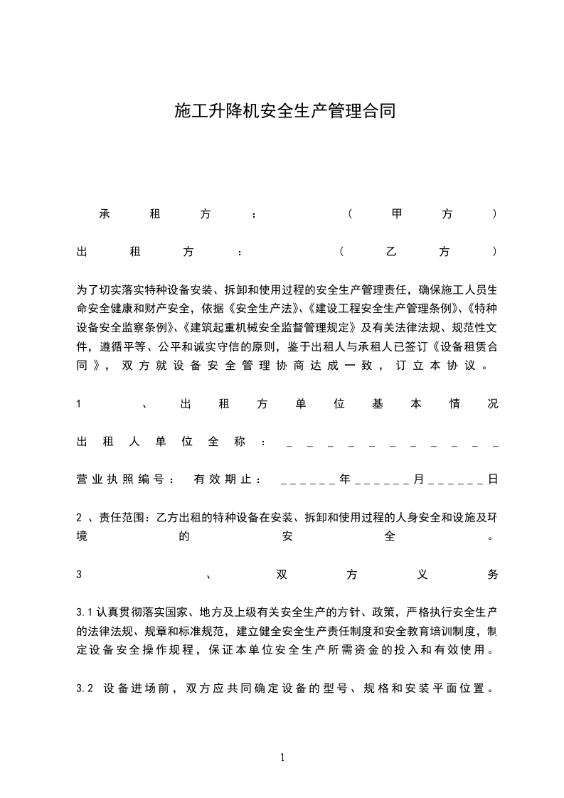 为了切实落实特种设备安装、拆卸和使用过程的安全生产管理责任,确保施工人员生命安全健康和财产安全,依据《安全生产法》、《建设工程安全生产管理条例》、《特种设备安全监察条例》、《建筑起重机械安全监督管理规定》及有关法律法规、规范性文件,遵循平等、公平和诚实守信的原则,鉴于出租人与承租人已签订《设备租赁合同》,双方就设备安全管理协商达成一致,订立本协议。