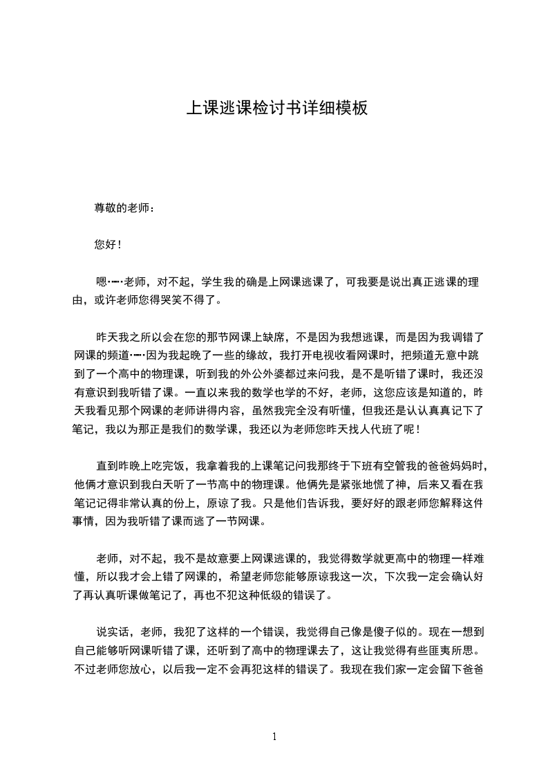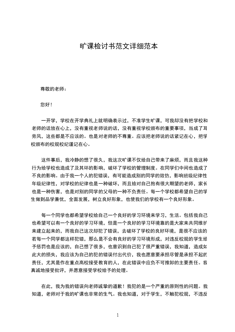 我是____级护理班的李利红,在这里给您写下这份检讨书,以向您表示我对逃课这种不良行为的深刻认识以及以后也不逃课的决心。