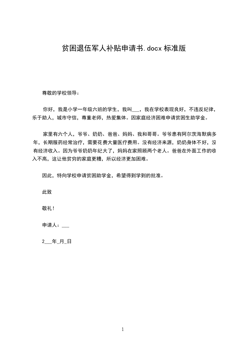 因此,特向学校申请贫困助学金,希望得到学到的批准。