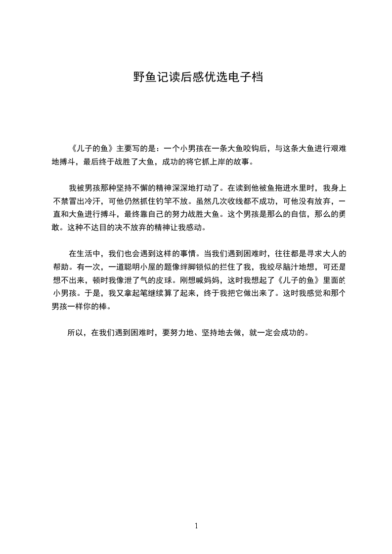 《儿子的鱼》主要写的是:一个小男孩在一条大鱼咬钩后,与这条大鱼进行艰难地搏斗,最后终于战胜了大鱼,成功的将它抓上岸的故事。