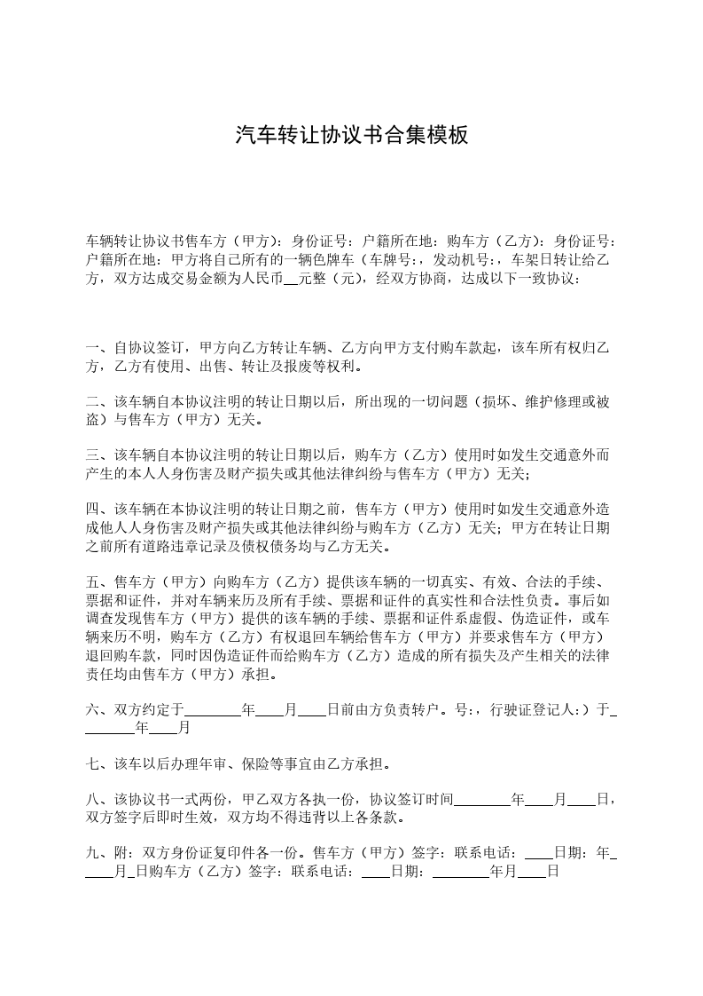 九、附:双方身份证复印件各一份。售车方(甲方)签字:联系电话:____日期:年_____月_日购车方(乙方)签字:联系电话:____日期:________年月____日