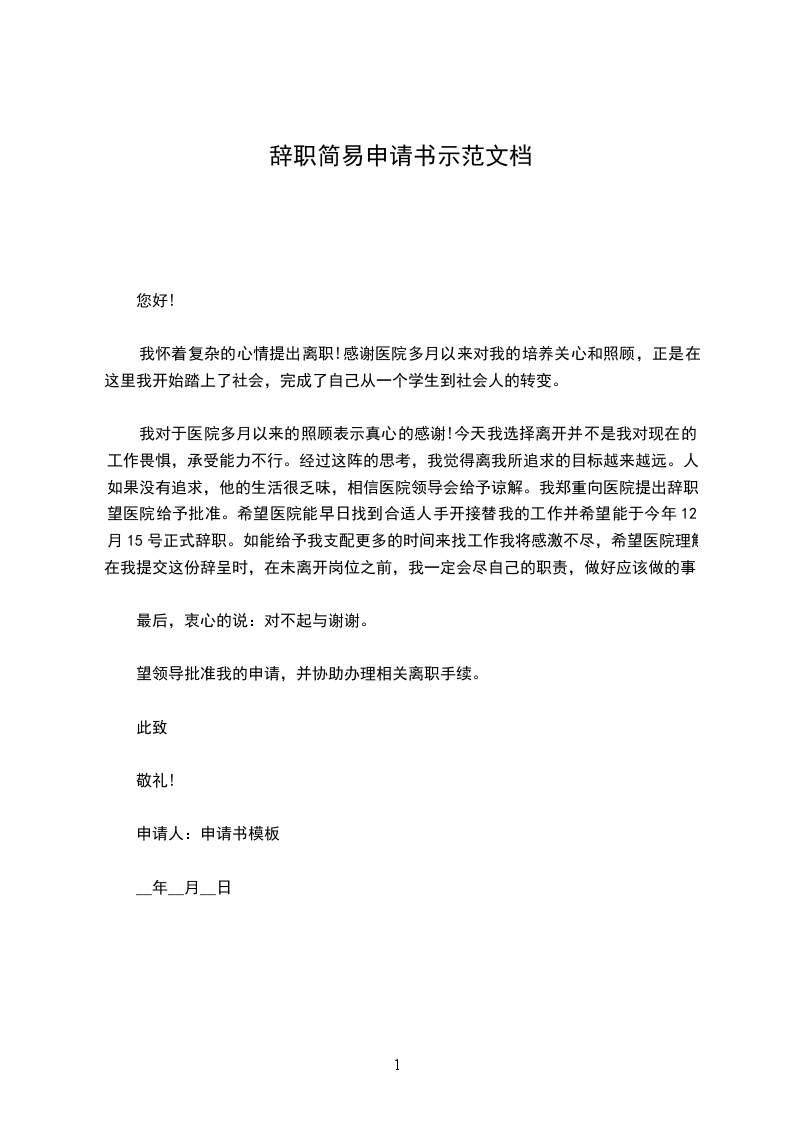 现在,由于我__的原因,在经过深思熟虑以及和家人的商议过后,我向酒店提出辞职的要求。鉴于__工作的特殊性,希望领导能早日安排合适的人选接替我的工作岗位,我希望能在__月__日前完成有关交接工作,交接前为酒店站好最后一班岗,保证酒店业务的正常运行,希望我们酒店今后更加辉煌,__总您和全体员工工作顺利,身体健康!综上所述,因为__个人原因,现正式向酒店提出辞呈,希望领导对我的申请予以考虑并批准,谢谢!