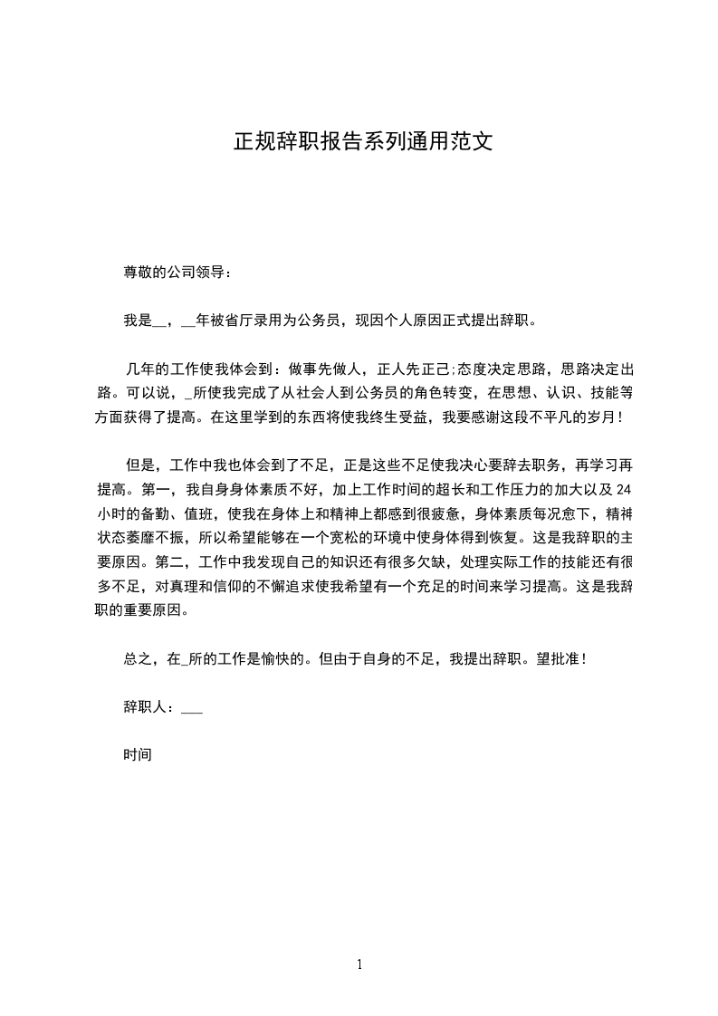 我是__,__年被省厅录用为公务员,现因个人原因正式提出辞职。