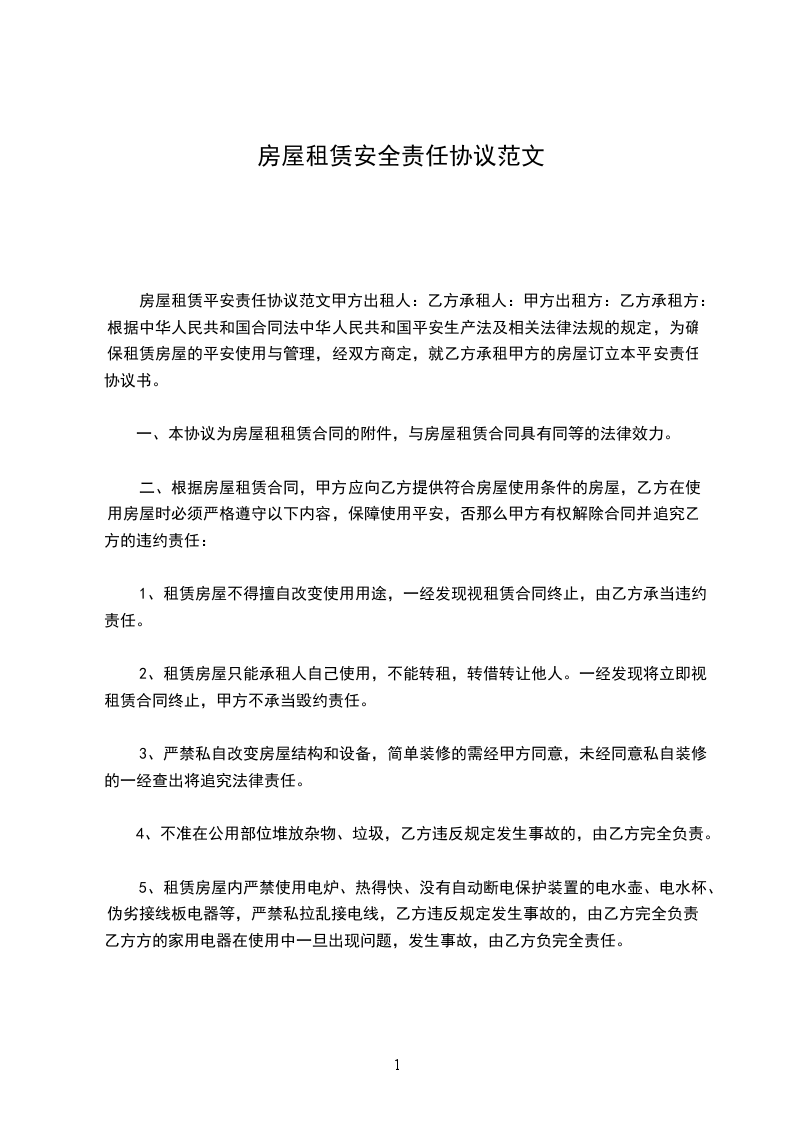 5.租赁房屋内严禁使用电炉、热得快、没有自动断电保护装置的电水壶、电水杯、伪劣接线板电器等,严禁私拉乱接电线,乙方违反规定发生事故的,由乙方完全负责。乙方的家用电器在使用中一旦出现问题,发生事故,由乙方负完全责任。