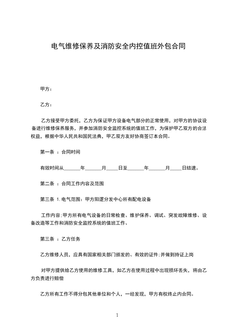 工作内容;甲方所有电气设备的日常检查、维护保养、调试、突发故障维修、设备改造等工作和消防安全监控系统的值班工作、