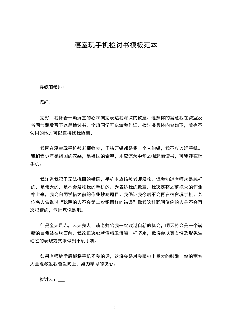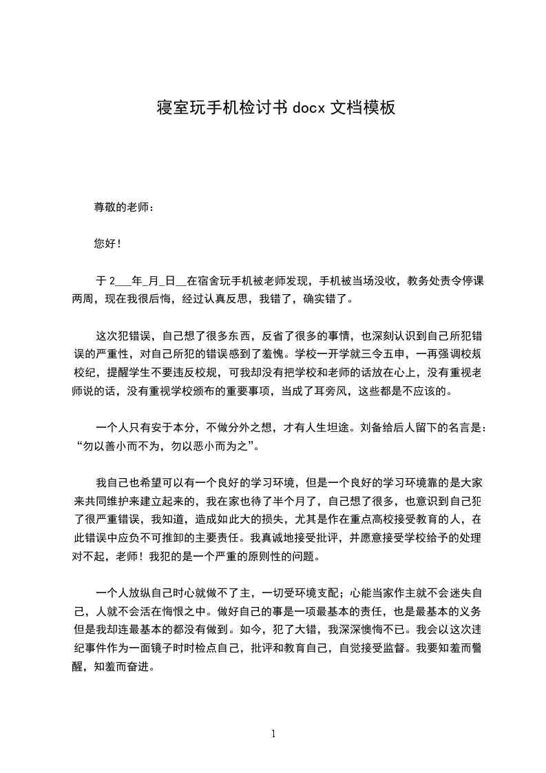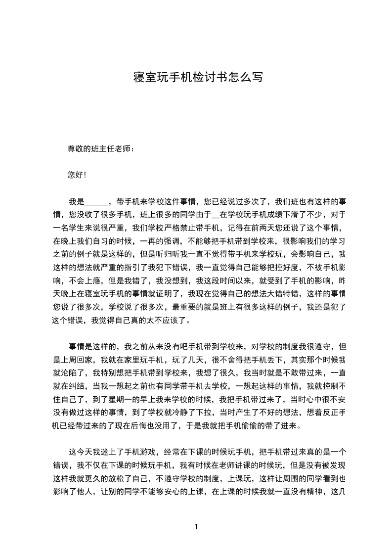 于2___年_月_日__在宿舍玩手机被老师发现,手机被当场没收,教务处责令停课两周,现在我很后悔,经过认真反思,我错了,确实错了。
