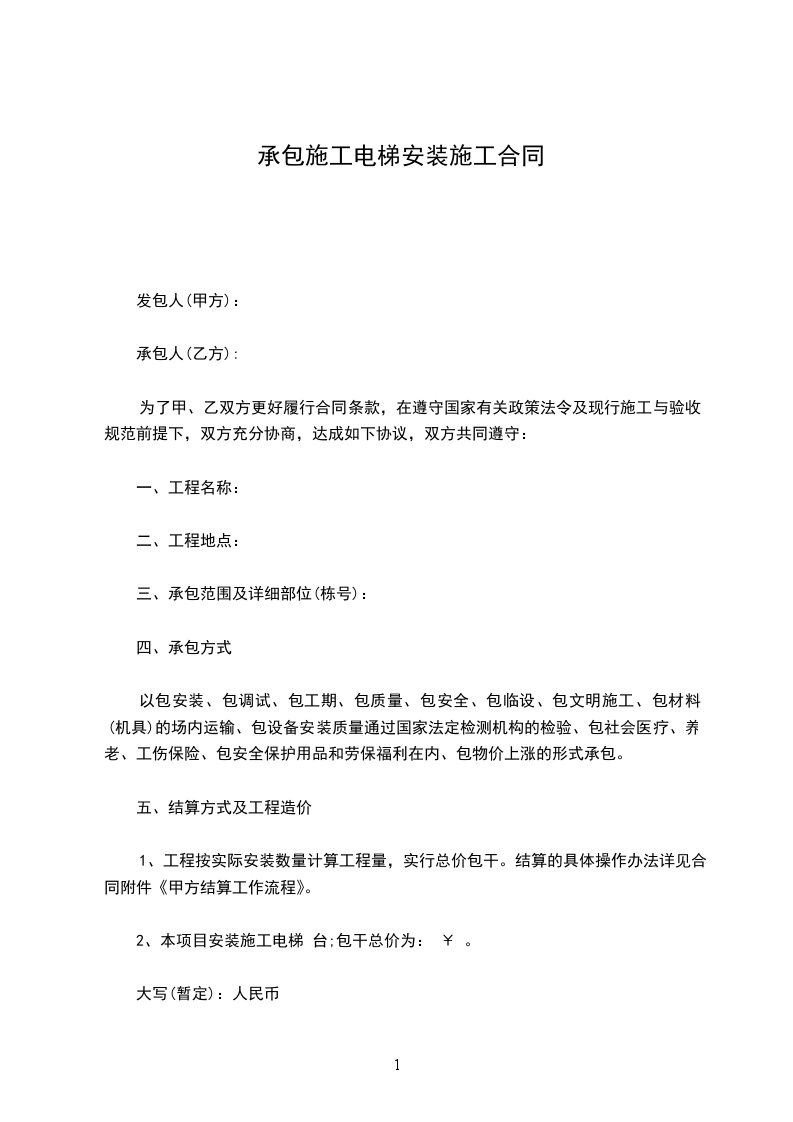 以包安装、包调试、包工期、包质量、包安全、包临设、包文明施工、包材料(机具)的场内运输、包设备安装质量通过国家法定检测机构的检验、包社会医疗、养老、工伤保险、包安全保护用品和劳保福利在内、包物价上涨的形式承包。