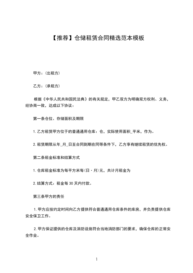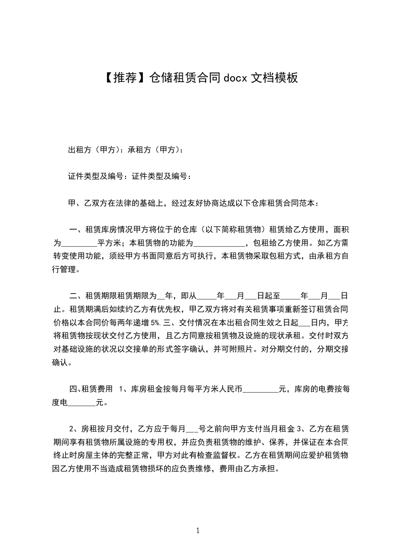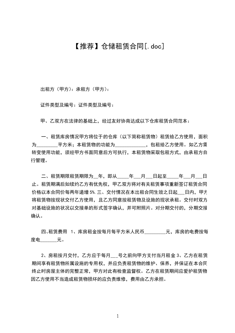【推荐】仓储租赁合同(优选)文档