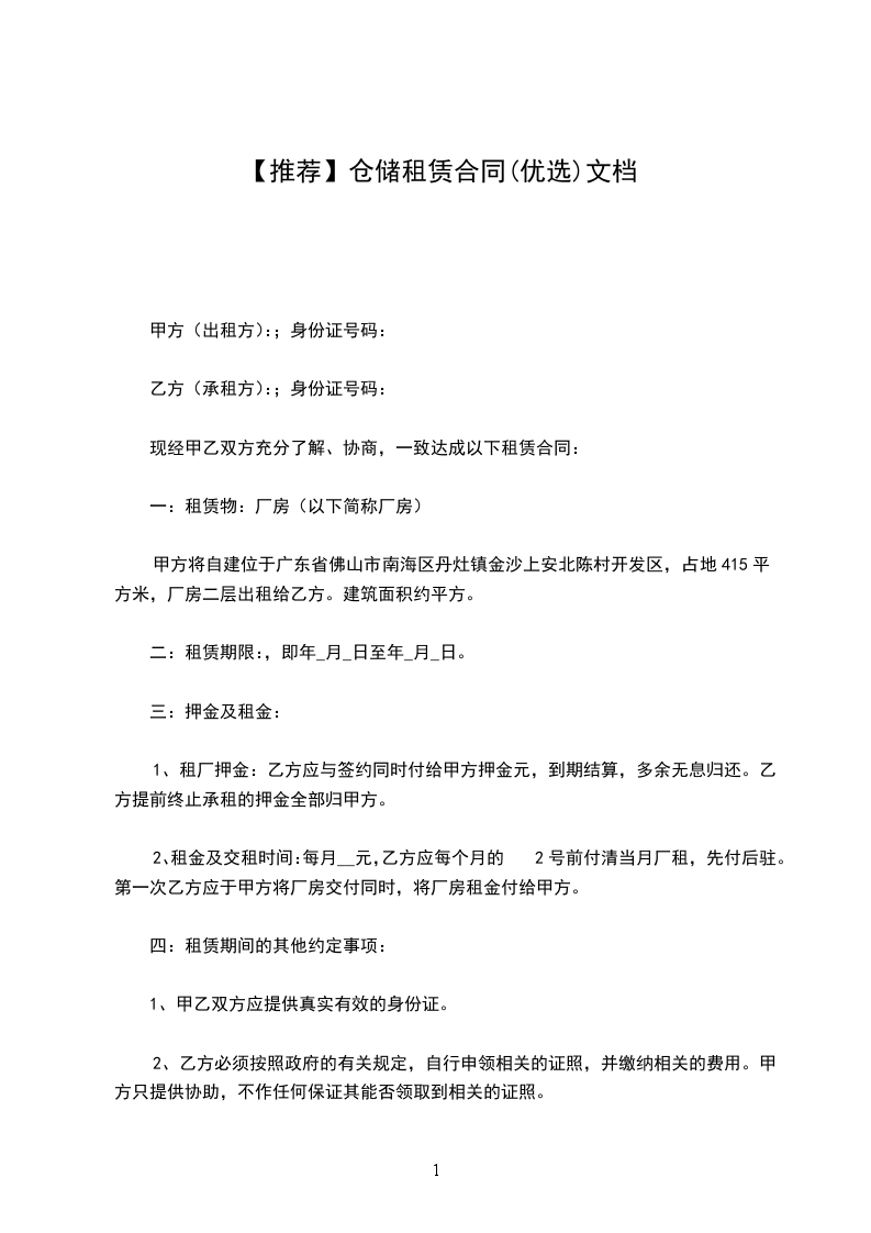 乙方(承租方):;身份证号码: