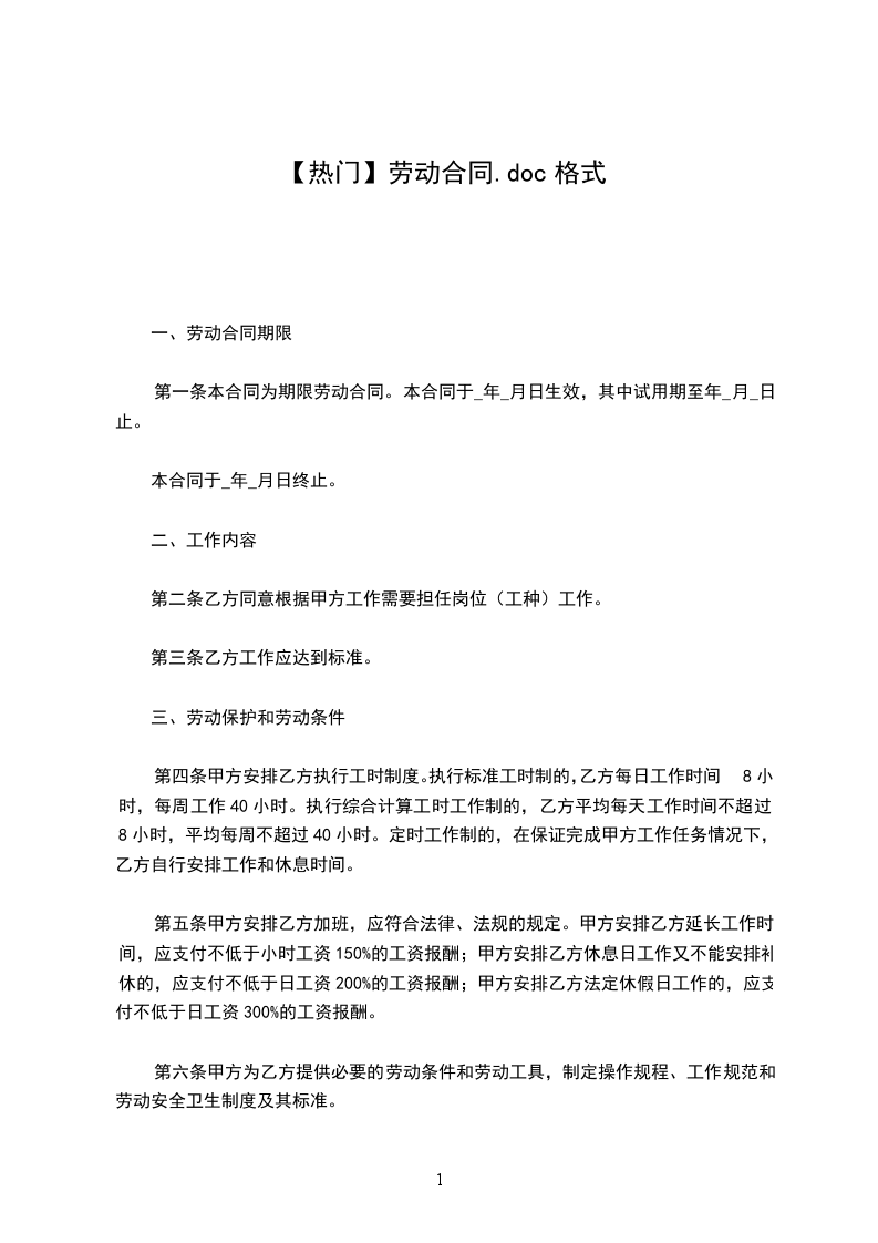 一、劳动合同期限