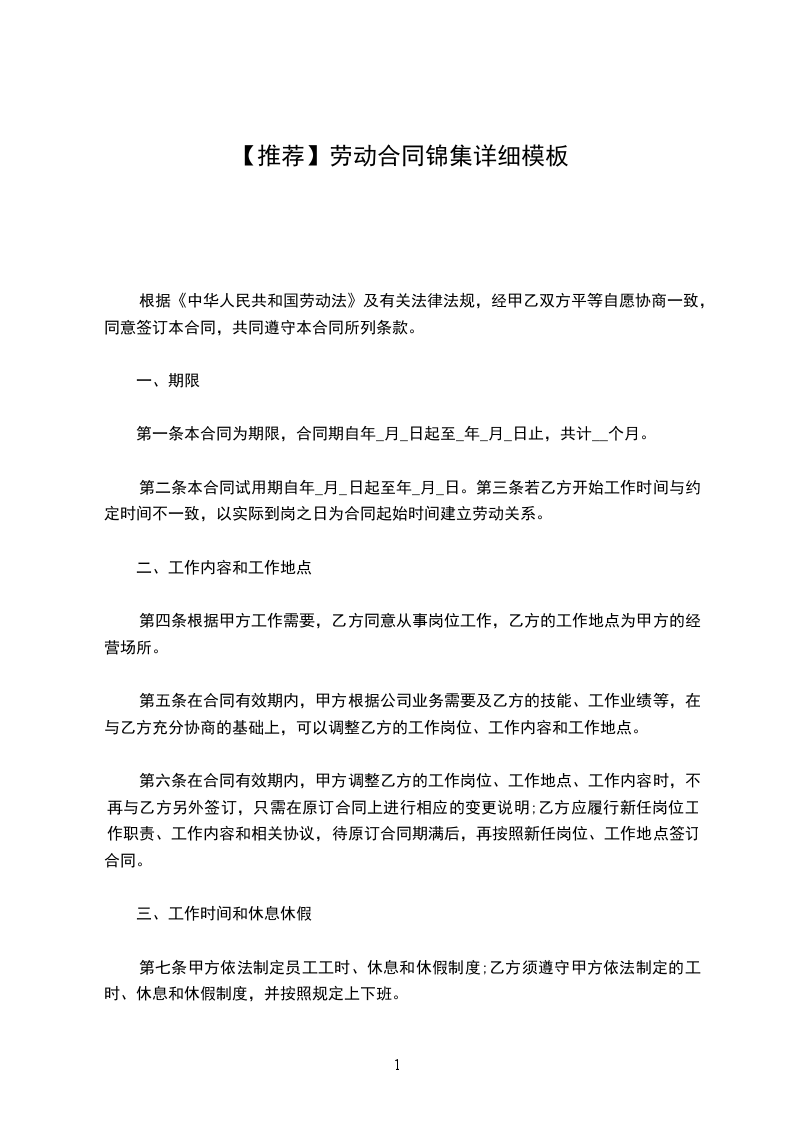 (1)固定期限劳动合同:自年_月_日起至年_月_日止。合同期满,经双方协商一致可以续订;双方或一方不愿续订的,本合同终止;若乙方出现《劳动合同法》第四十二条情形之一的,依照第四十五条规定,应当顺延至情形消失时终止。