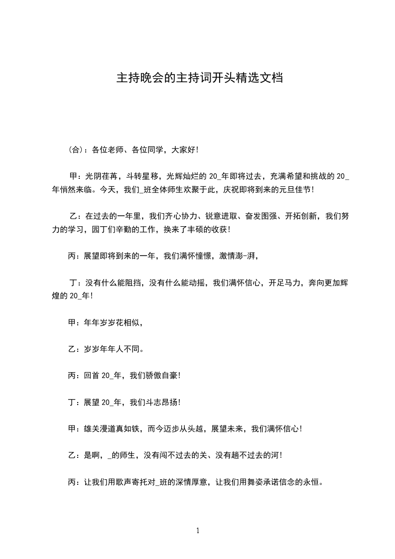 甲:光阴荏苒,斗转星移,光辉灿烂的20_年即将过去,充满希望和挑战的20_年悄然来临。今天,我们_班全体师生欢聚于此,庆祝即将到来的元旦佳节!