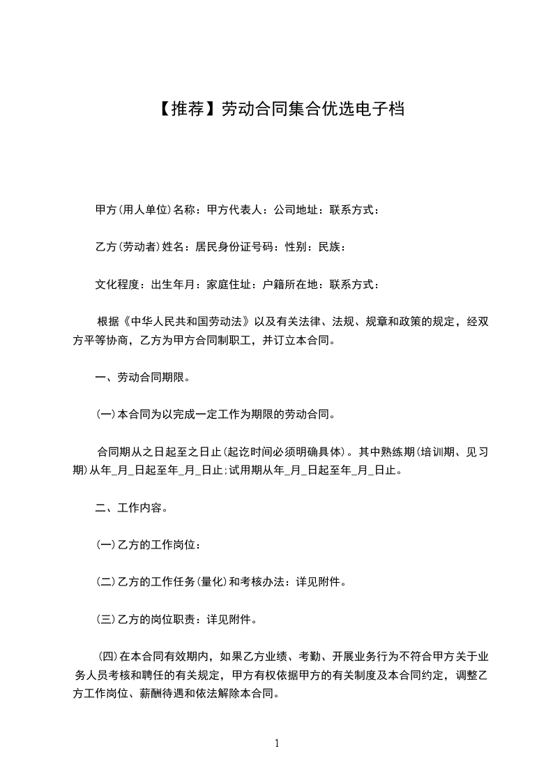 (一)甲方聘用乙方从事______________工作,具体任务或职责是:________________________________________________