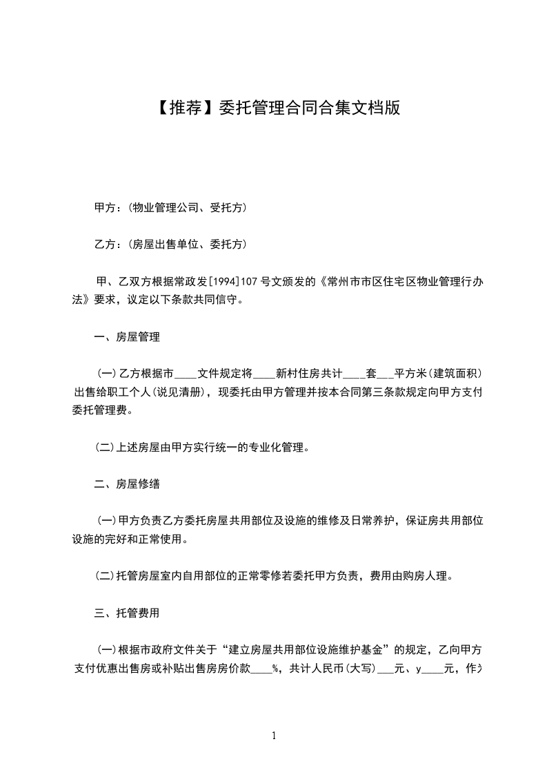 委托管理合同篇5委托方:,根据中华人民共和国法律设立,其注册地址为____________________(以下简称甲方)。