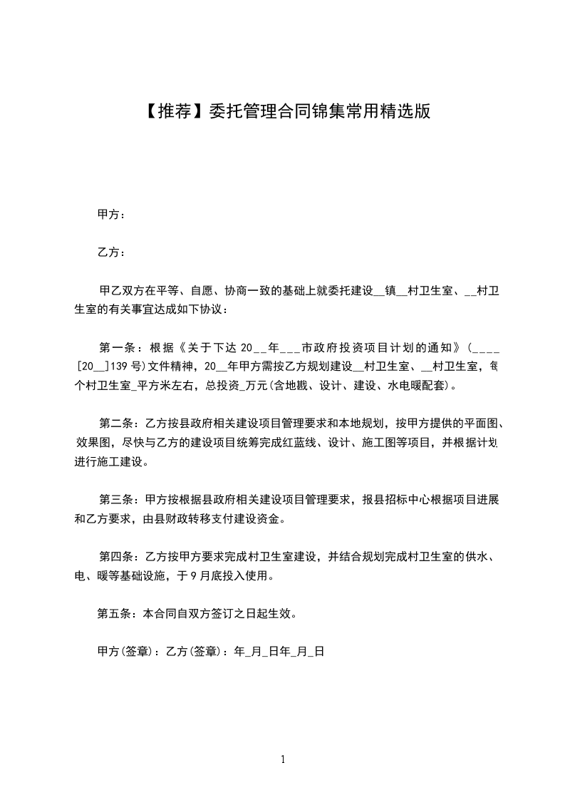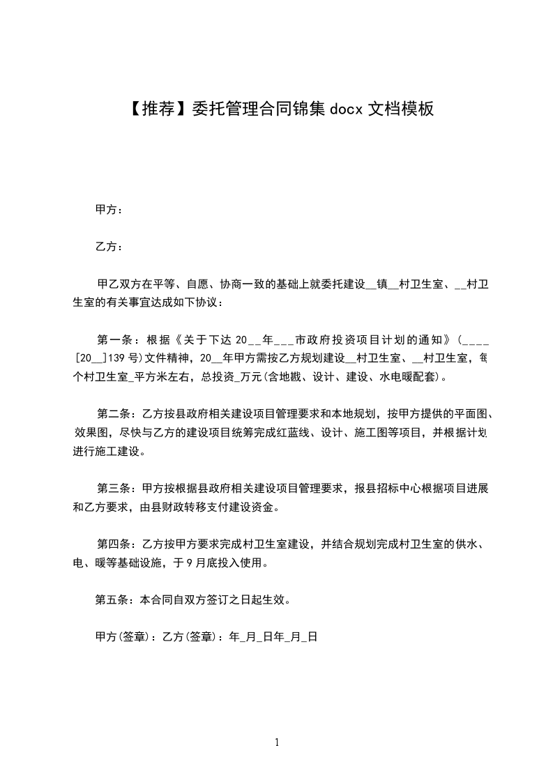 甲乙双方在平等、自愿、协商一致的基础上就委托建设__镇__村卫生室、__村卫生室的有关事宜达成如下协议: