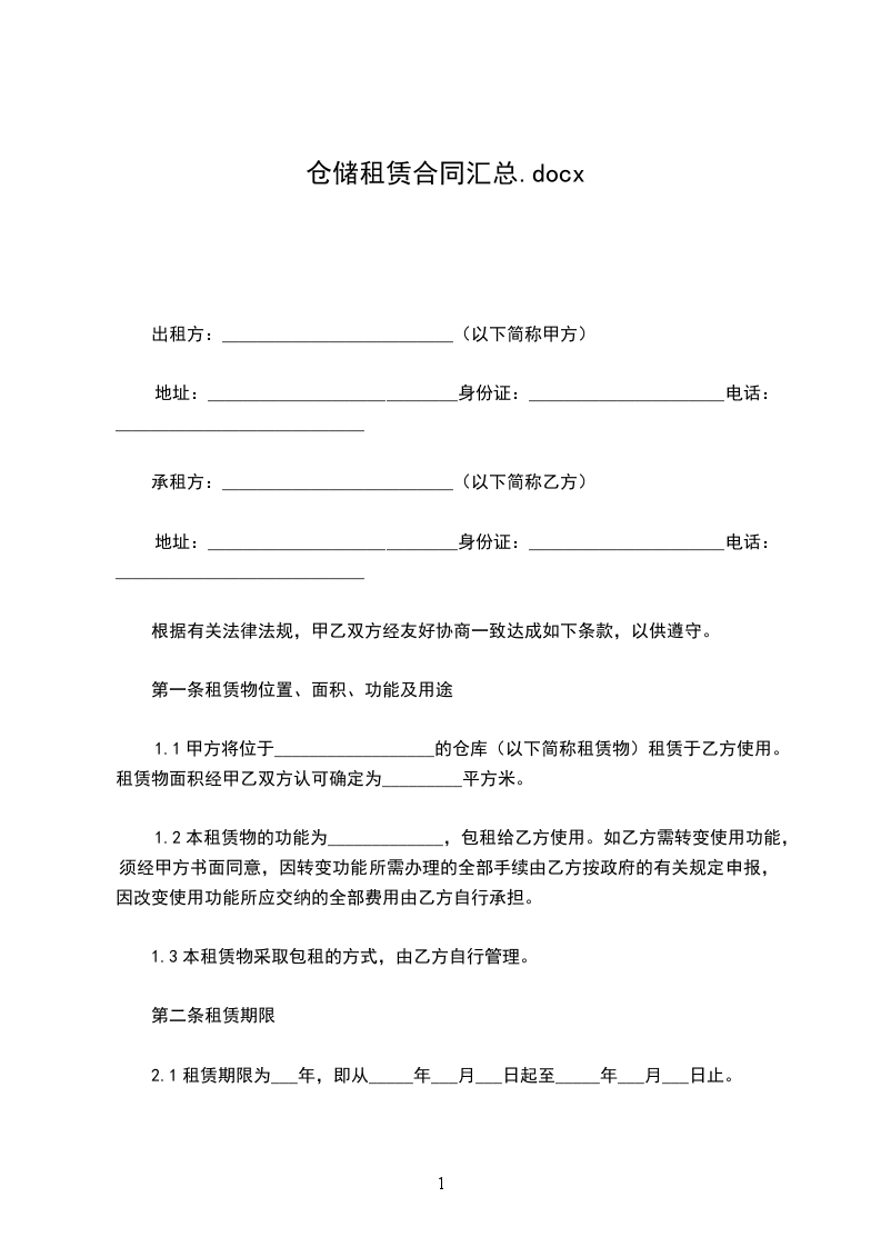 乙方(承租方):;身份证号码: