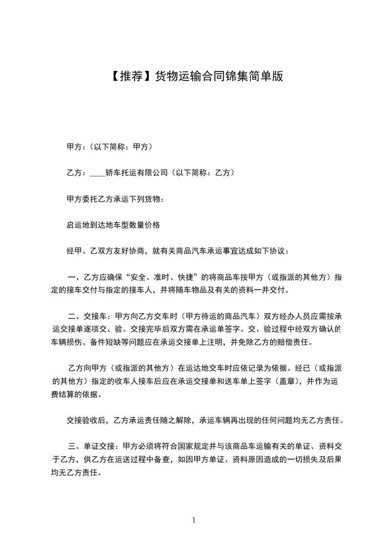 经甲、乙双方友好协商,就有关商品汽车承运事宜达成如下协议: