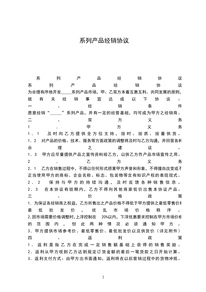 为合理有序地开发_____系列产品市场,甲、乙双方本着互惠互利、共同发展的原则,就有关经销事宜达成以下协议: