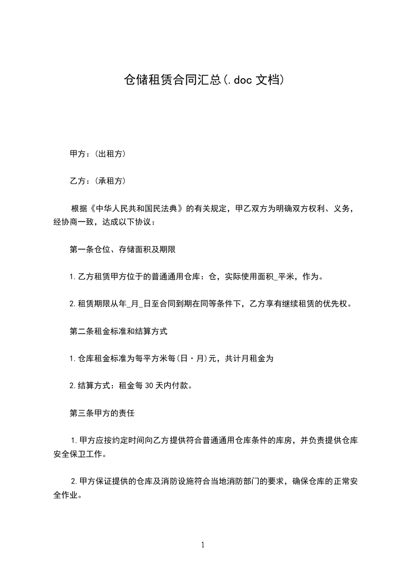 1.乙方租赁甲方位于的普通通用仓库:仓,实际使用面积_平米,作为。