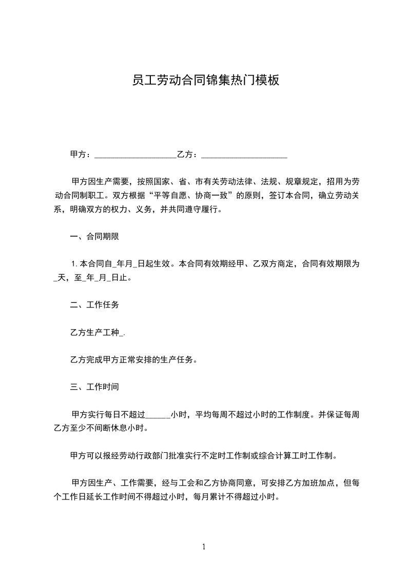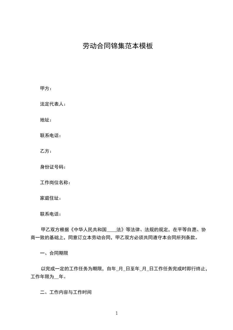 (一)初(续)订合同期限自年_月_日至年_月_日止,其中试用期为前个月。初聘期限是乙方为甲方工作的最低服务期限。