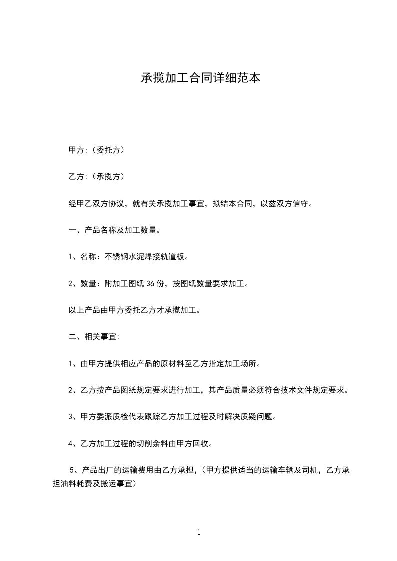 1、由甲方提供相应产品的原材料至乙方指定加工场所。