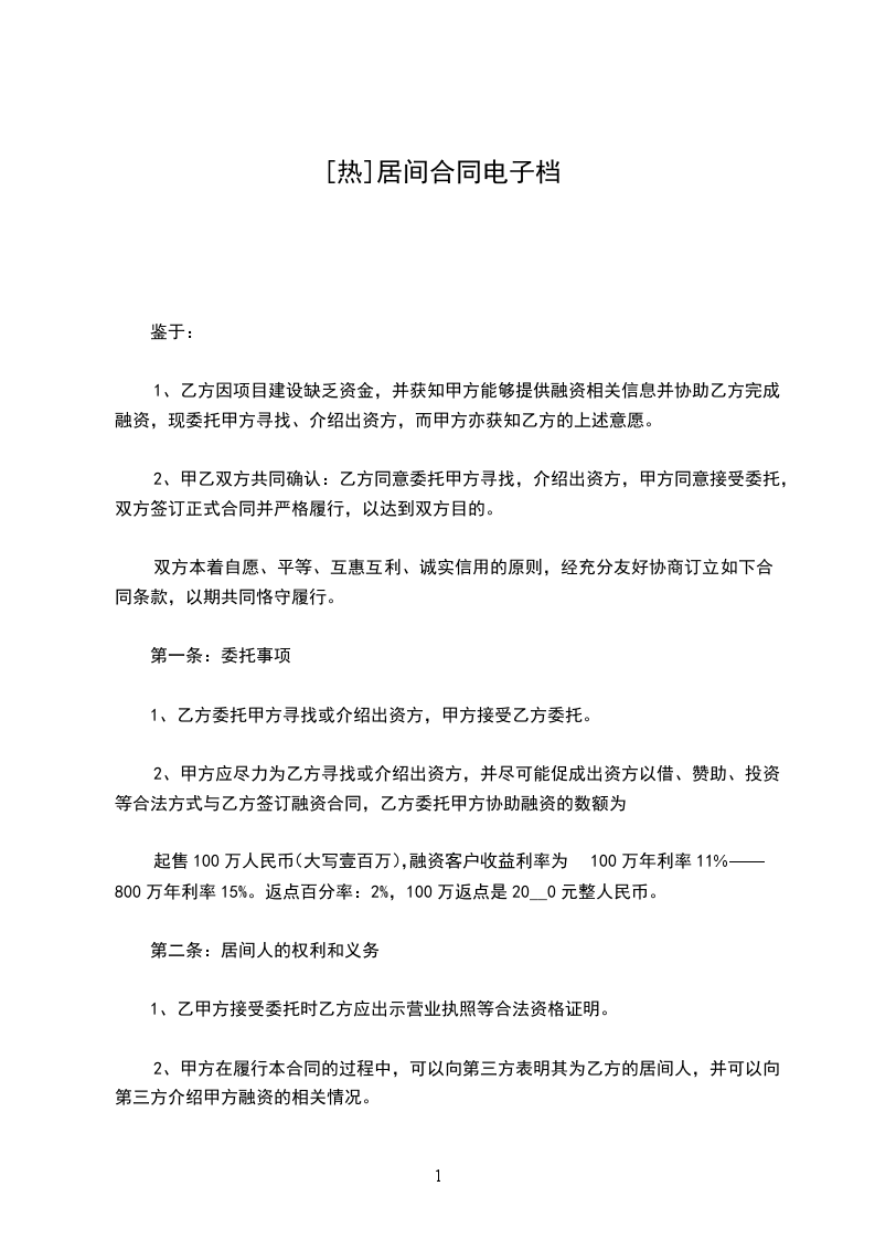 甲方委托乙方为其居间出租具备以下条件的房屋(见附件),并协助其与承租人签订房屋租赁合同。