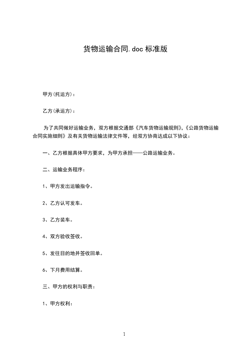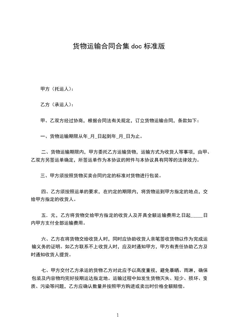 货物运输合同篇5委托方:___________(以下简称甲方)