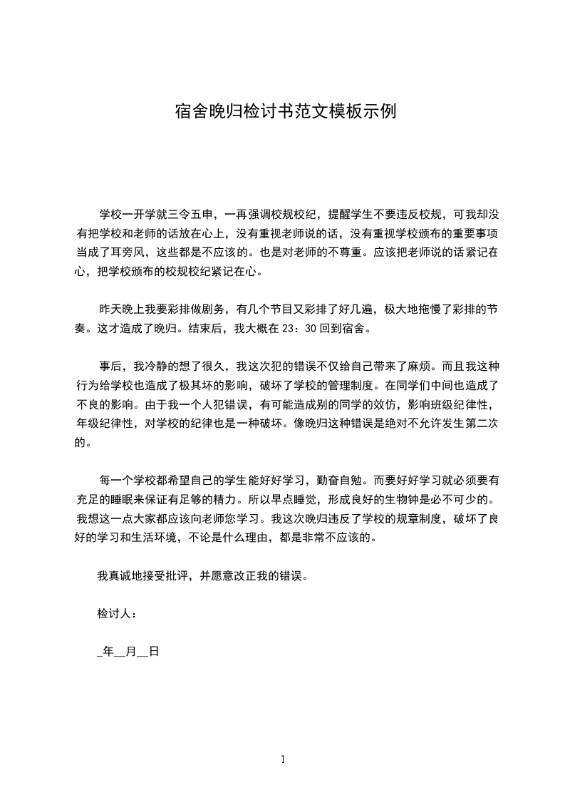 对于我_月__号晚上晚归的不良行为我深感懊悔。