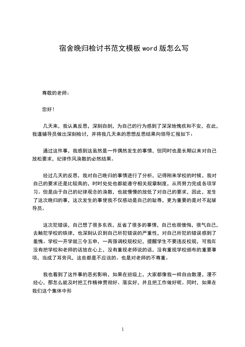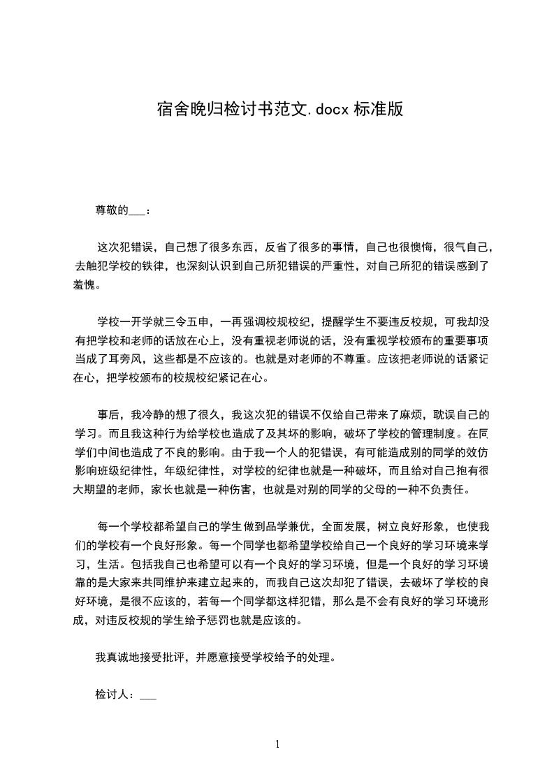 因为我的原因令班级的名义受损。在这里我保证不再犯,不再晚归,遵守宿舍条例。对于自己观念上的错误。以为晚归不是很严重,但是现在知道错了。
