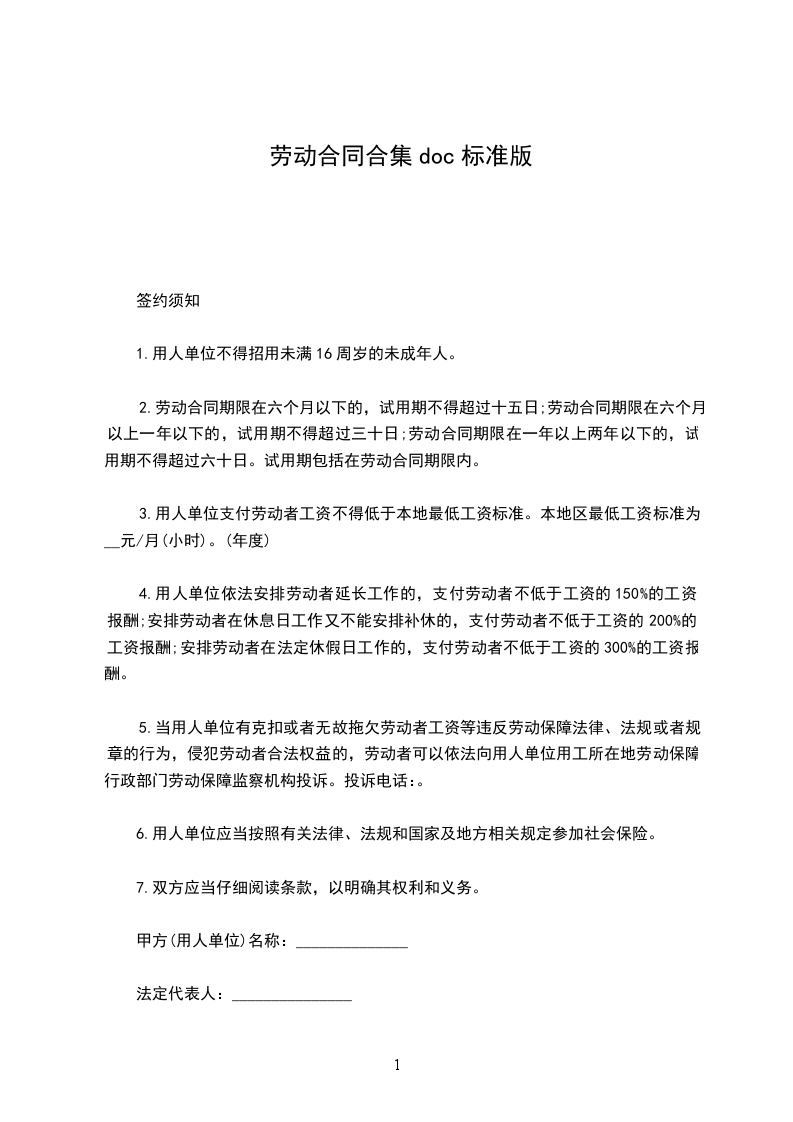 3.用人单位支付劳动者工资不得低于本地最低工资标准。本地区最低工资标准为__元/月(小时)。(年度)