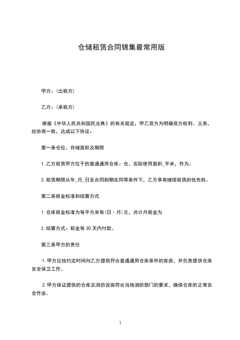1.1甲方将位于__________________的仓库(以下简称租赁物)租赁于乙方使用。租赁物面积经甲乙双方认可确定为_________平方米。
