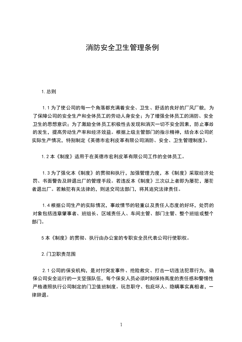 1.1对违反甲方相关安全消防和保卫规定的行为,甲方采用警告罚款、停工整顿直至停止合同的处罚。
