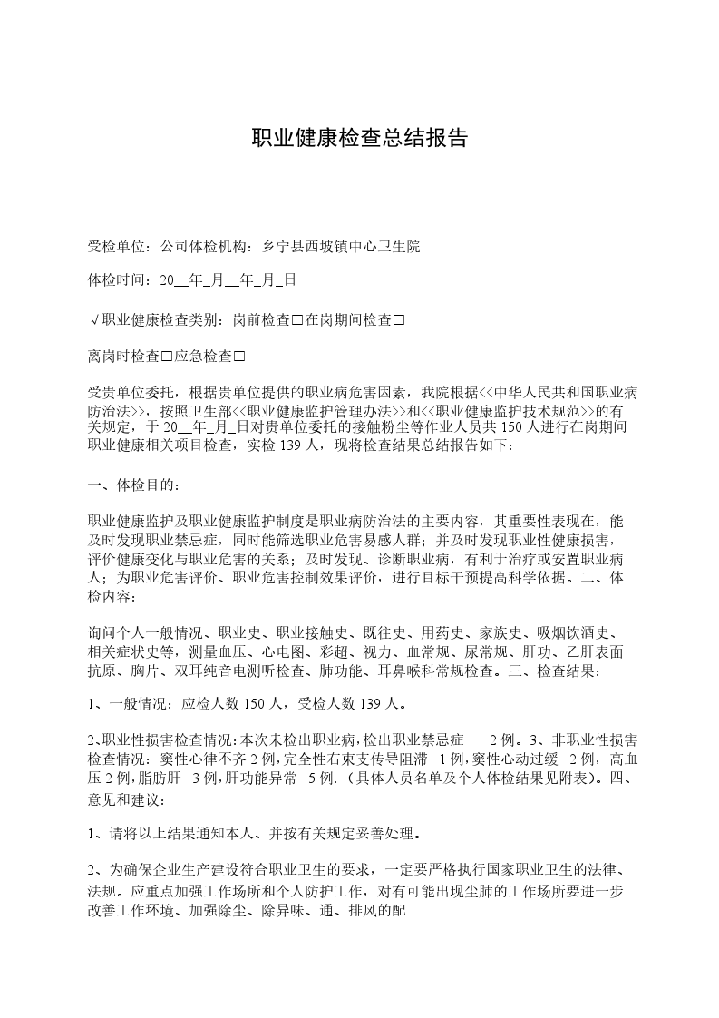 四、乙方应在体检后10个工作日内向甲方出具书面体检结果,包括:所有受检人员每个人的职业健康检查表一份;检出职业禁忌症、需复查人员、其他疾病或重要阳性结果人员个体检查结果及处理建议一份;职业健康检查报告书1份。如需延长时间乙方应及时告知甲方。