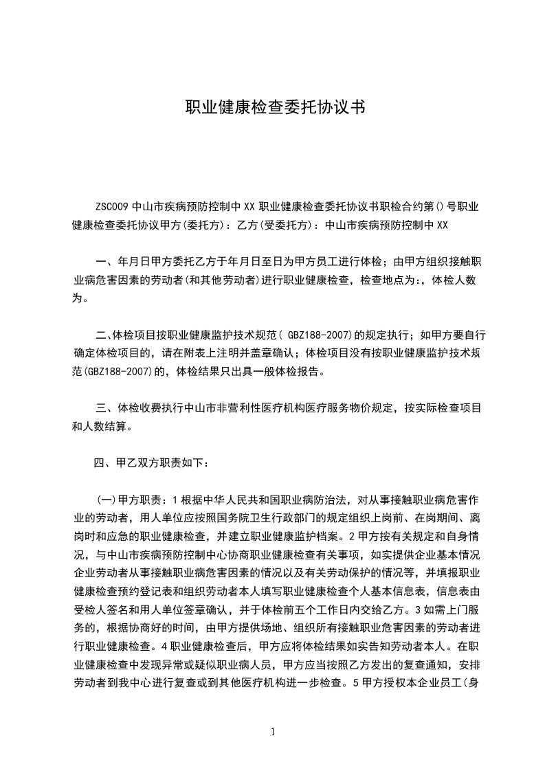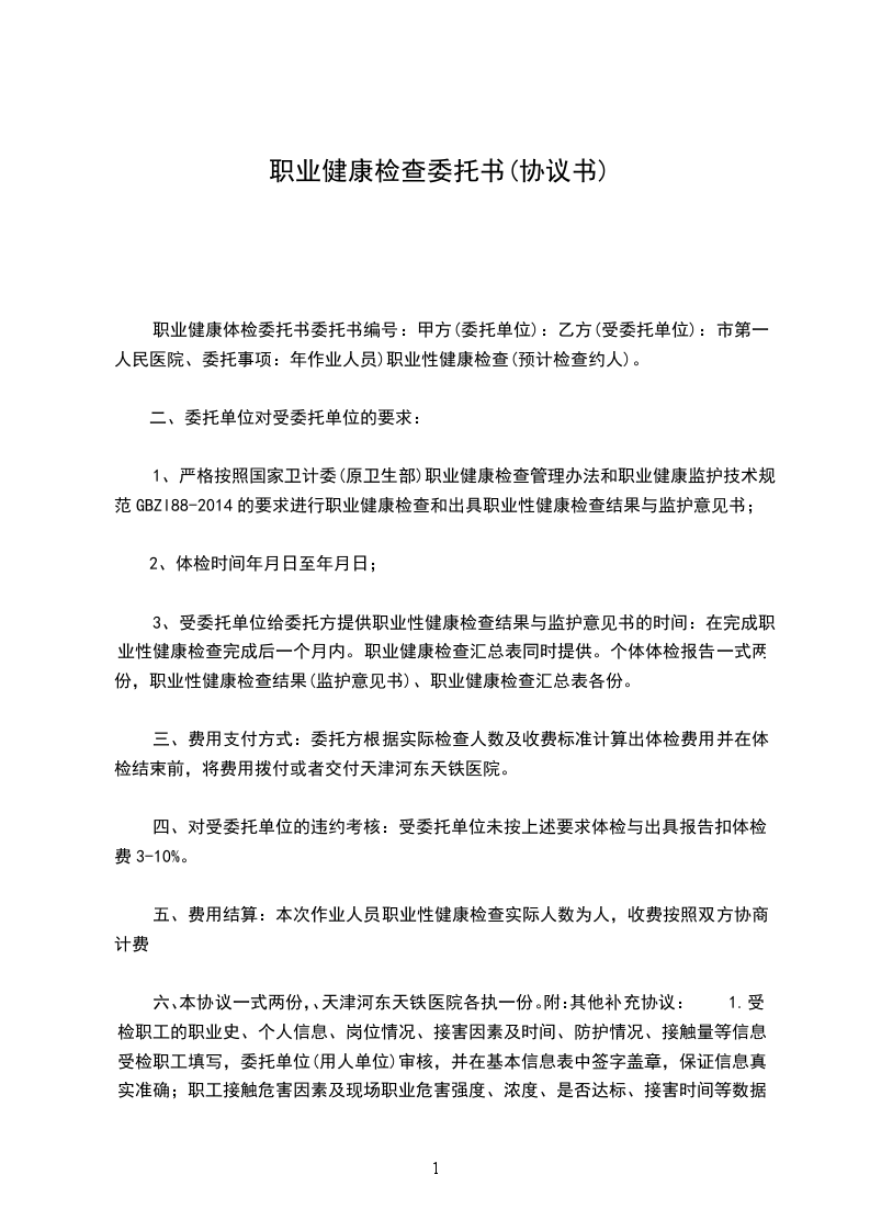一、甲方根据本单位情况委托乙方对甲方从事接触 等职业病危害因素作业人员进行职业健康检查并进行评价。