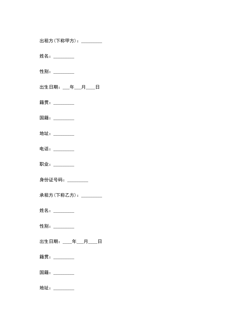 二、乙方需缴纳每月租金____币___元整,甲方应给回收据。每月租金在当月头五天内交清,交租方式以______支付,交租地点双方同意在_____。