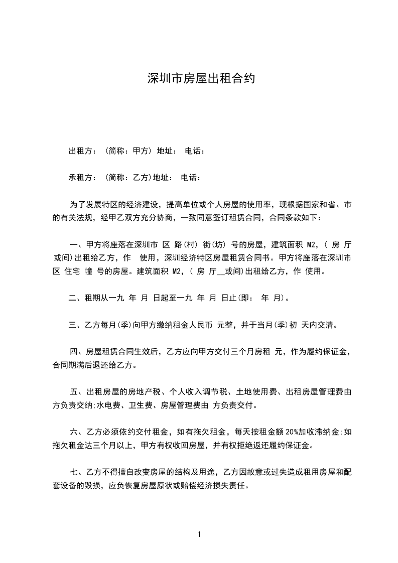 为调剂深圳经济特区房产使用的余缺,甲方愿意将在深圳经济特区的的房产出租,乙方自愿承组,双方根据深圳经济特区市有关房产管理规定,经过友好协商,签订合同条款如下: