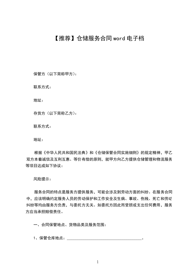 根据《中华人民共和国民法典》等法律法规的规定,在平等、自愿、协商一致的基础上,甲乙双方就甲方向乙方提供仓储服务一事达成如下协议: