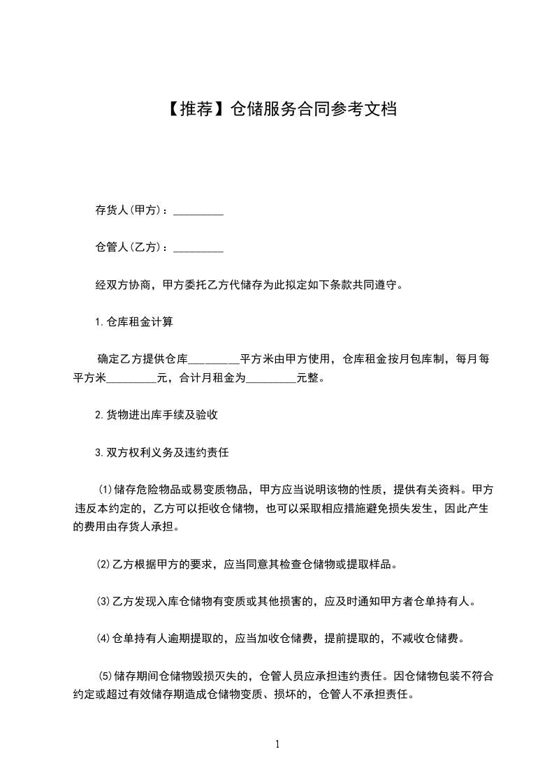 2、任何一方如违反本合同明示的违约条款,应向对方支付相应于__年度仓储服务费用30%的违约金,且守约方还有权解除合同。