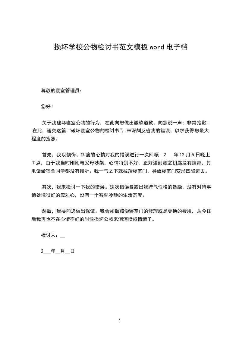 关于我破坏寝室公物的行为,在此向您做出诚挚道歉,向您说一声:非常抱歉!在此,递交这篇“破坏寝室公物的检讨书”,来深刻反省我的错误,以求获得您最大程度的宽恕。